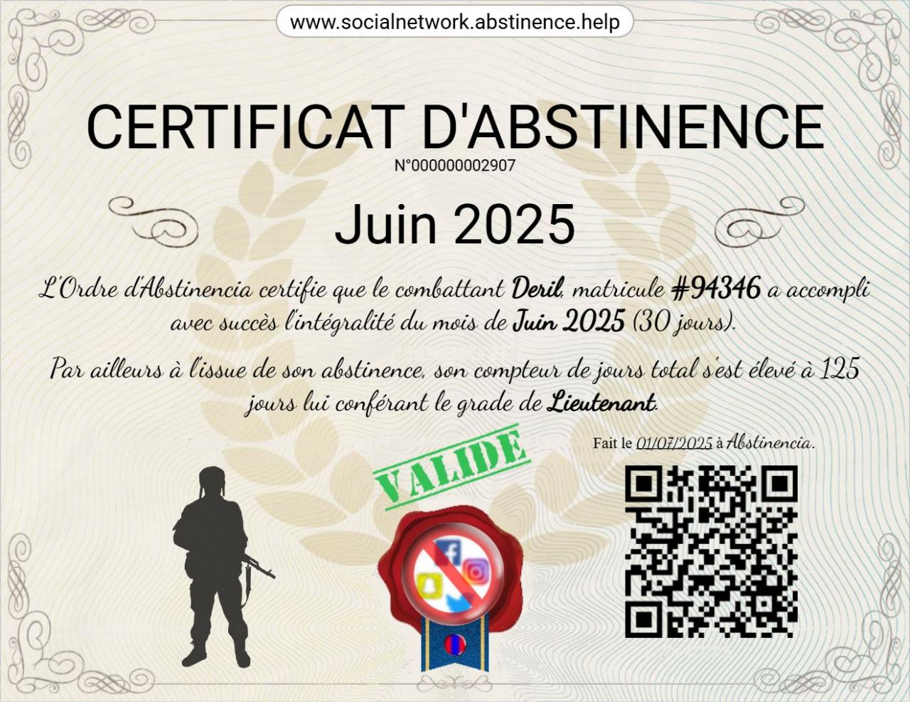 - música, por el momento lo olvidoIniciada el 16/02/2026 à 12h11Objetivo fijado: 100 días - J4 Ya casi va a cumplir un mes que solo veo YouTube 30 minutos al día en mi celular, e Instagram más o menos lo mismo!! :Desafío aceptado:Nuevo rango obtenido: Soldat